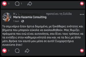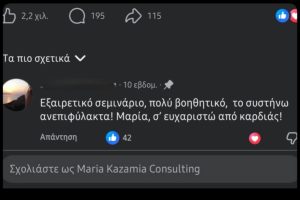 Το σημαντικό είναι ότι στα σεμινάριά της, οι δύσκολες έννοιες, γίνονται πάντα κατανοητές και απλές σε όλους τους συμμετέχοντες.
